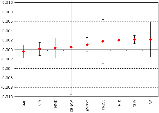 *EMPA was a participant in the CIPM MRA at the time of the comparison.
