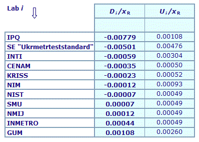 The degree of equivalence of each laboratory i with respect to the key comparison reference value is given by a pair of terms: Di = (xi - xR) and Ui, its expanded uncertainty (k = 2) that is calculated as explained on page 14 of the Final Report.