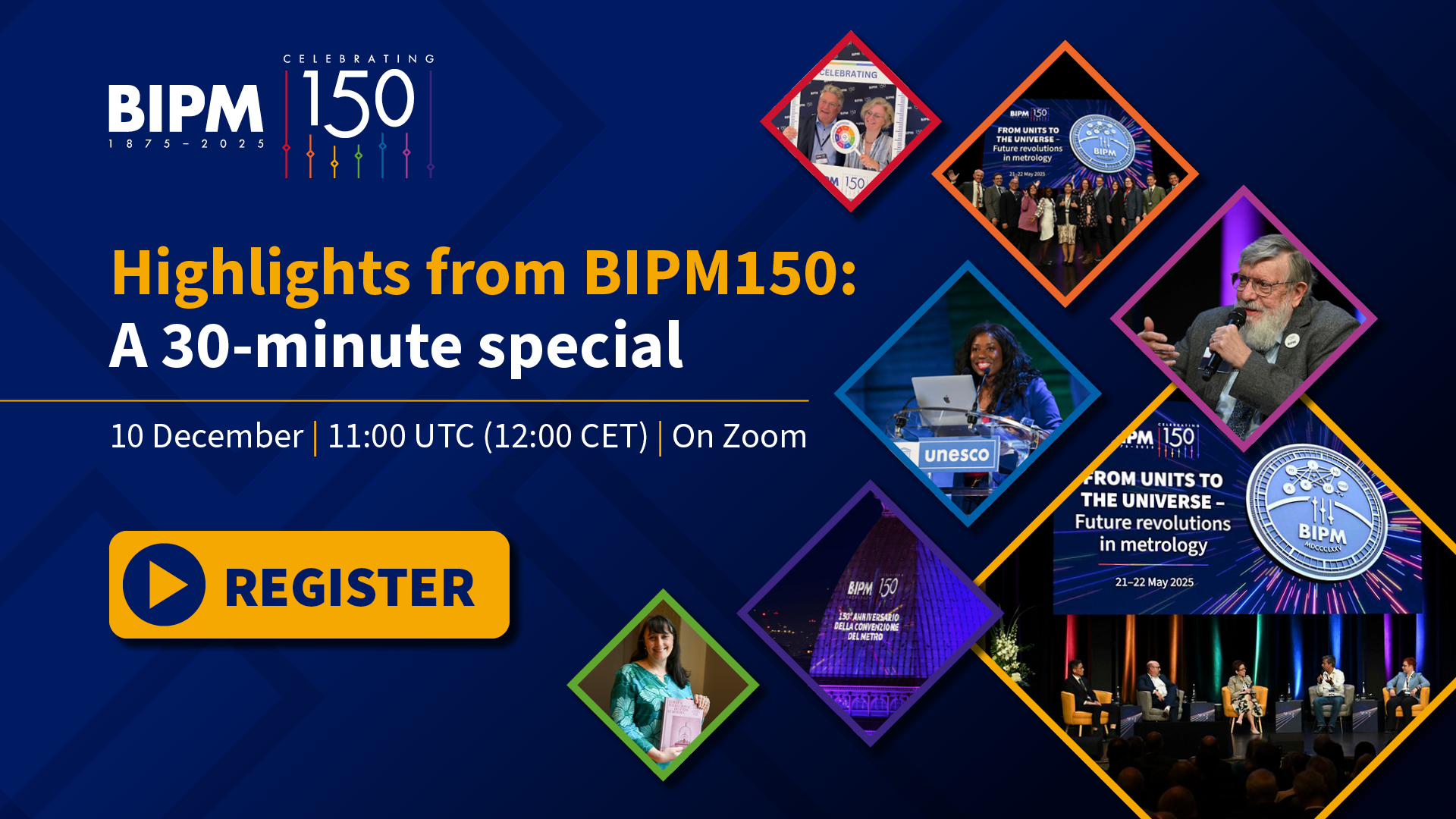 “Highlights from BIPM150: A 30-minute special” will provide an opportunity to look back on a landmark year for international metrology and to acknowledge the contributions of our partners around the world.
