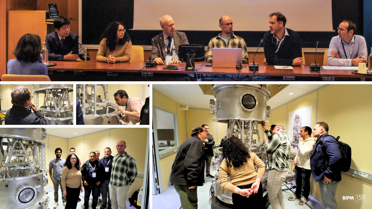 Photo caption: Panellists during the KBTM Special Session – Knowledge Transfer on Kibble Balance Core Topics, and participants visiting the BIPM’s Kibble Balance lab. Copyright ©BIPM.
