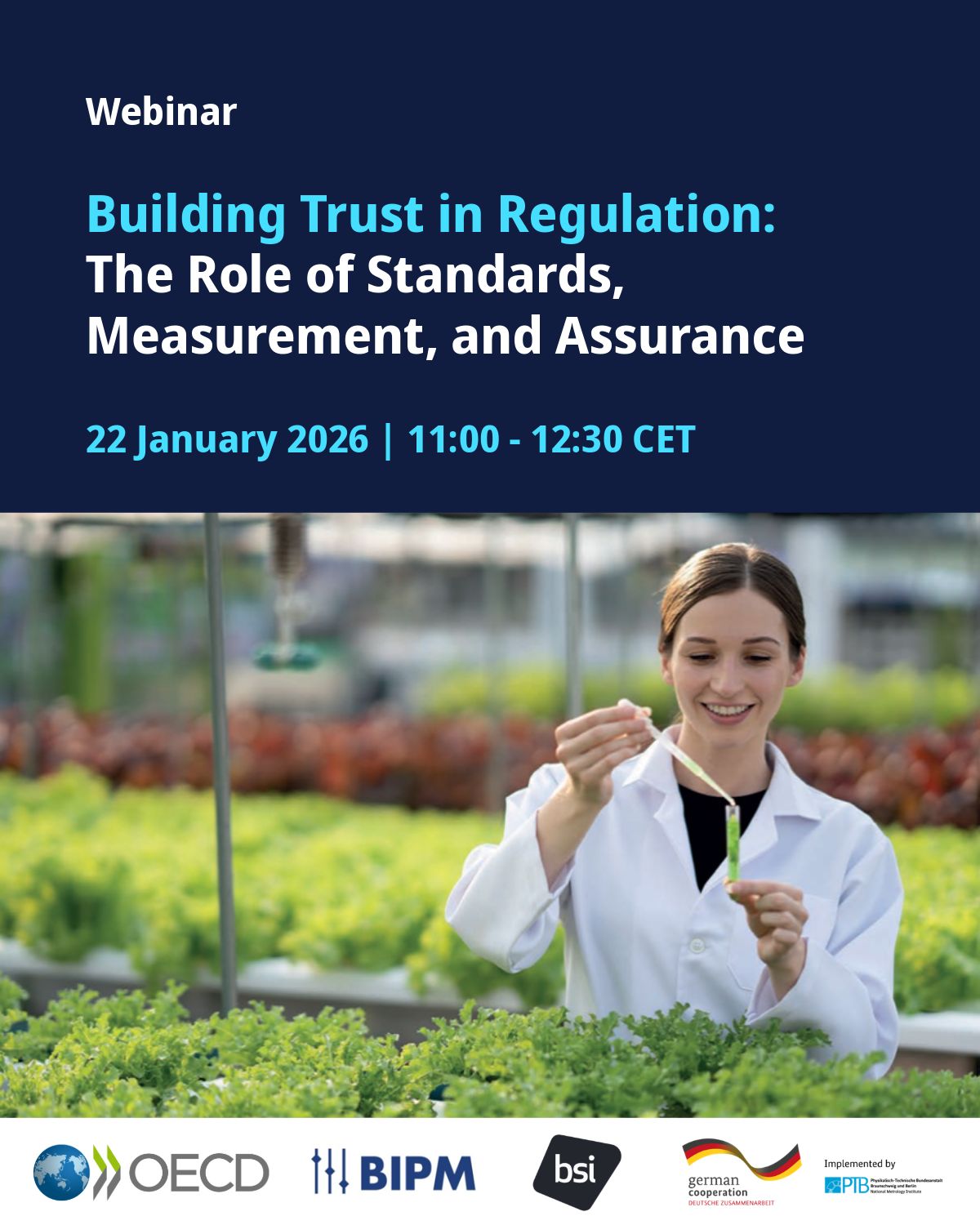 On 22 January 2026, the Organisation for Economic Co-operation and Development (OECD), in partnership with the Bureau International des Poids et Mesures (BIPM), Physikalisch-Technische Bundesanstalt (PTB) and the British Standards Institution (BSI), will host a joint public webinar titled: