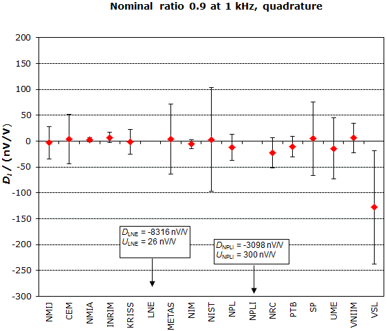 both expressed in nV/V, for the in-phase and the quadrature components of the voltage ratio