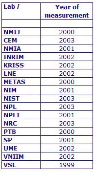 | The key comparison reference value, xR, is calculated as the weighted mean of the participants' results with exclusion of outliers. Its expanded uncertainty (k = 2), UR, is calculated as explained in section 1.3 of the Final Report, Part 2. |